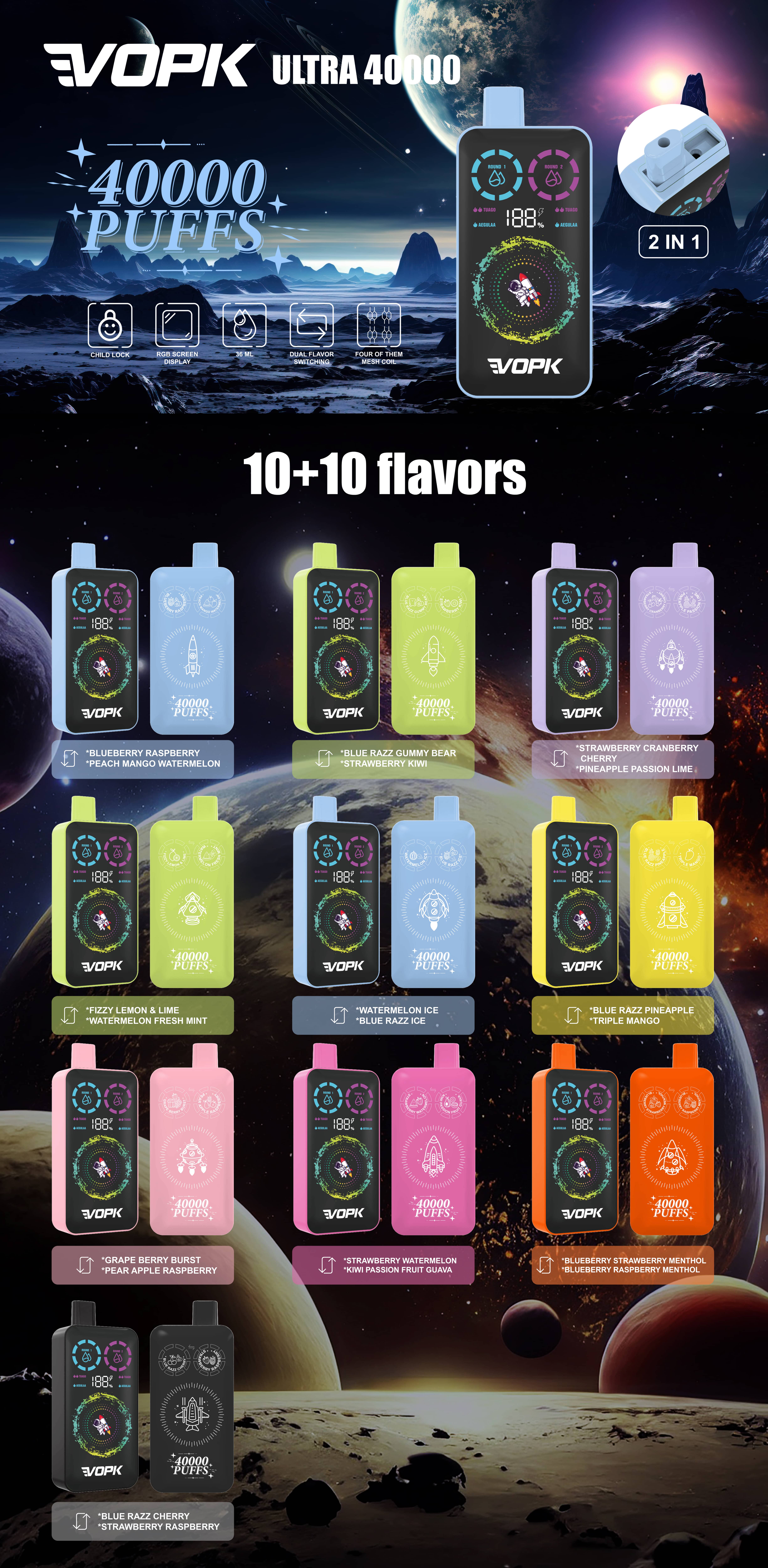 VOPK 40K PUFFS 6 FLAVORS